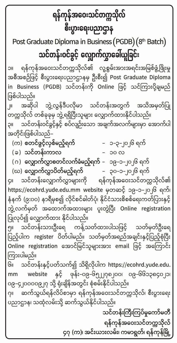 Online Post Graduate Diploma in Business PGDB 8th Batch (https://ecohrd.yude.edu.mm)